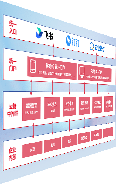 对协作平台提供支持服务,,,支持企业应用与协作平台对接,,,,包含组织同步、、、消息集成、、、待办集成等。。。。支持目前主流的协作平台:钉钉、、、、企微和飞书。。。。